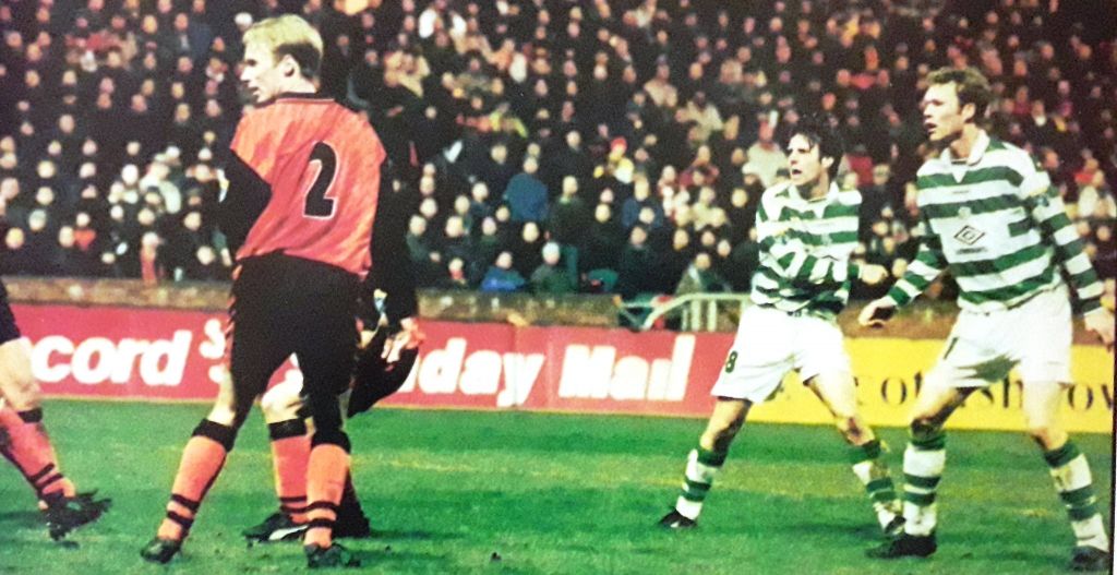 FOUR – TUESDAY 27 JANUARY 1998 – Celtic show great character in coming back from being 0-1 down to Dundee United at Tannadice in the last quarter of an hour to win 2-1 with goals from Simon Donnelly and Craig Burley. It was a tremendous night, and Celtic owe an awful lot to Jonathan Gould in the goal for keeping Celtic in the game.