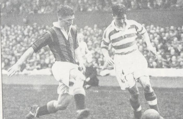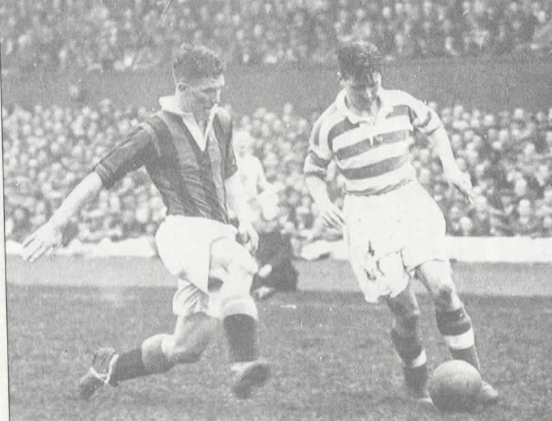 Celtic’s short experience of summer football began on 7 June 1941 with a venture into the Summer Cup against Hibernian. The first leg was held at Paradise and the first Celt to touch the ball was John Hunter, when he picked it out the net after 12 seconds! Celtic hit back from that shock goal by Milne, with an attack of their own. But Back came Hibs with Anderson hitting a beauty just over the bar.