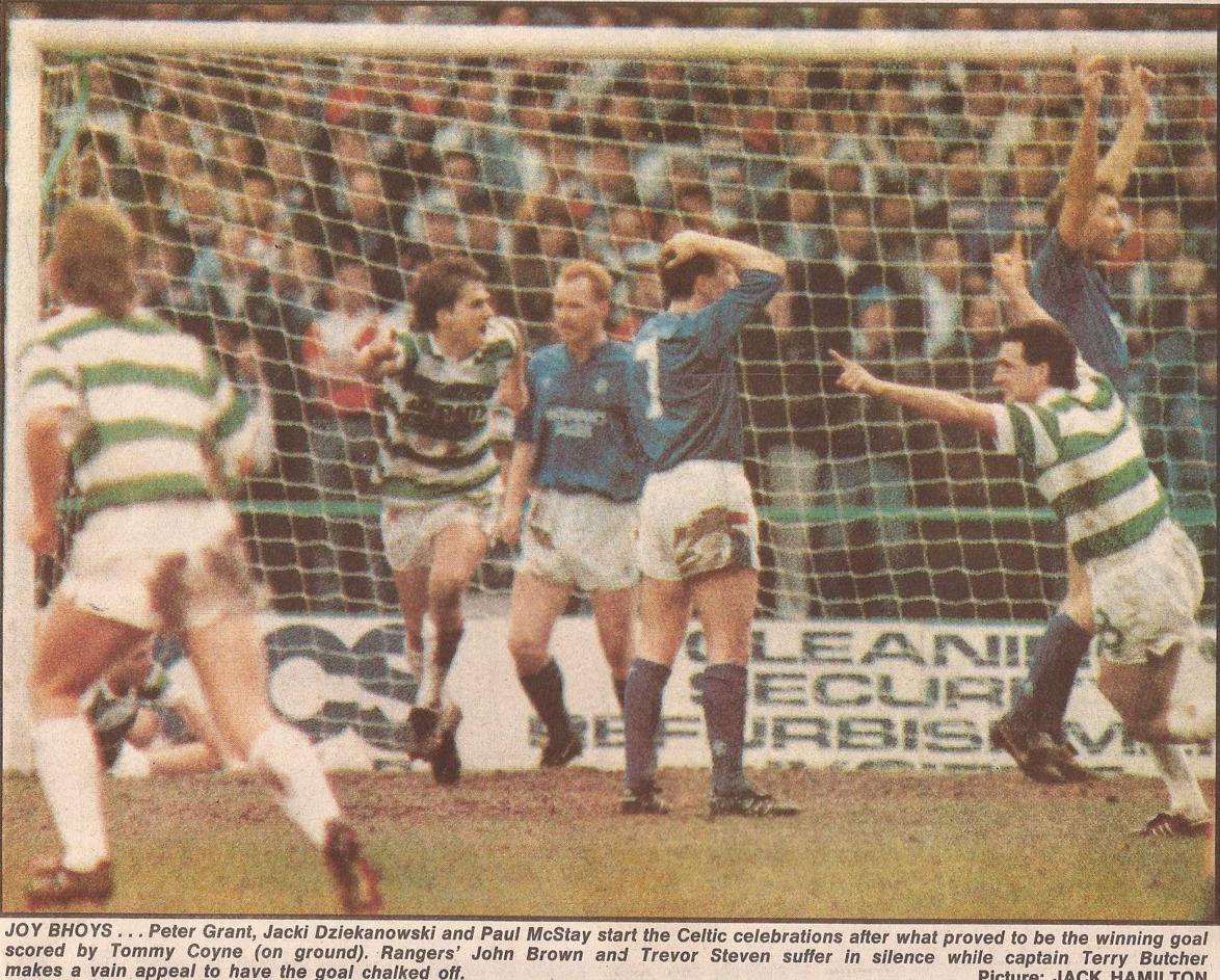 In what was a poor season, things took a similar nosedive for Tommy Coyne, but it could have been so different. In a sliding doors moment, as Celtic took on Rangers at Ibrox on 4 November 1989, Joe Miller broke clean on Chris Woods in the Rangers goal. Woods managed to save Millers effort and Tommy had a glorious chance to give Celtic the lead. In front of the Celtic fans Tommy hit the post. When you consider that a certain Judas striker scored the winning goal you can see why it was a sliding doors moment. Sometimes you need that bit of luck and it didn’t quite turn out as Tommy or Celtic would have wanted.