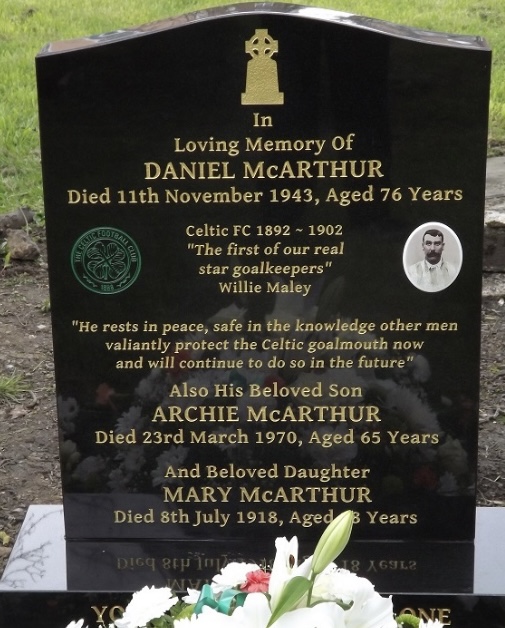 The first was located 3 miles from Provanmill, in the shadow of Celtic Park at Eastern Necropolis Cemetery. Situated behind the North Stand, yards from the Janefield Street wall, is the grave of Celtic’s first star goalkeeper – Dan McArthur.