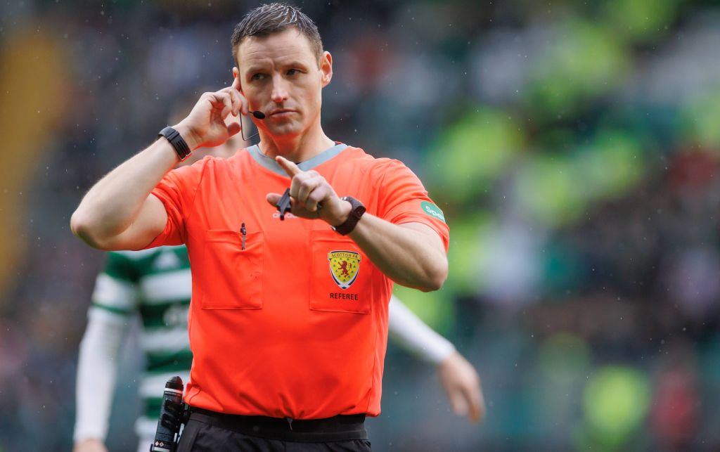 Celtic v Hibernian – cinch Premiership – Celtic Park Referee Steven McLean in action during the cinch Premiership match at Celtic Park, Glasgow. Picture date: Saturday March 18, 2023. Photo Steve Welsh