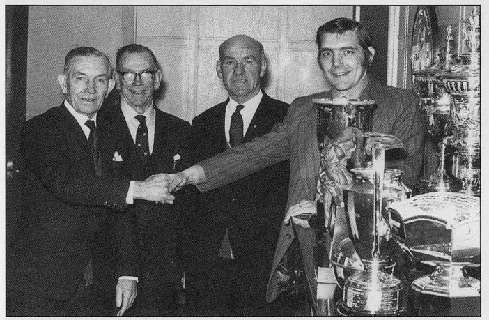 Adam is on the extreme left of this picture taken a few months before he died in 1973. He is alongside Jimmy McGrory, Jimmy Delaney and Bobby Murdoch, and he is well worth his place in such illustrious company, arguably four of the best Celts of all time. It was taken immediately after Murdoch had scored the club’s 6,000th goal. Adam had scored the 2,000th, McGrory the 3,000th and Delaney the 4,000. The scorer of the 5,000th Frank Brogan could not be there that day.