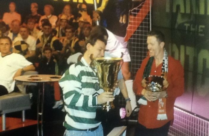 They were in there from 12noon but the coach never turned up till 4.30pm. Everyone was drunk by this time, so they all got a carry-out for the bus in the London rush hour. The driver got lost so one of their guys sat with him to get him to South London. They got to the studio two hours later after the swally to a stunned security when they came off the bus. They were put in a kind of canteen with the Bhoys in good voice, while all the other teams fans were having tea and coffee!