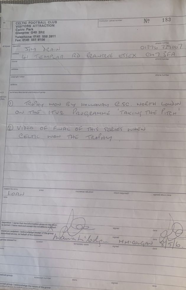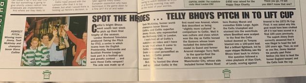 They had the trophy at the Black Horse pub at the time when the Celtic Roadshow came down with Matt McGlone, who then did a feature in The Celtic View about it. They contacted Celtic FC some months later to tell them the story and they asked them to bring the cup up with some the old videos. They loved it and said they would put it in their Champions Lounge. Baird’s Bar used to play the quiz footage on matchdays. Holloway CSC were founded in 1995 and were based in the Black Horse, Wedmore Street, London. Unfortunately the CSC and pub are no more.