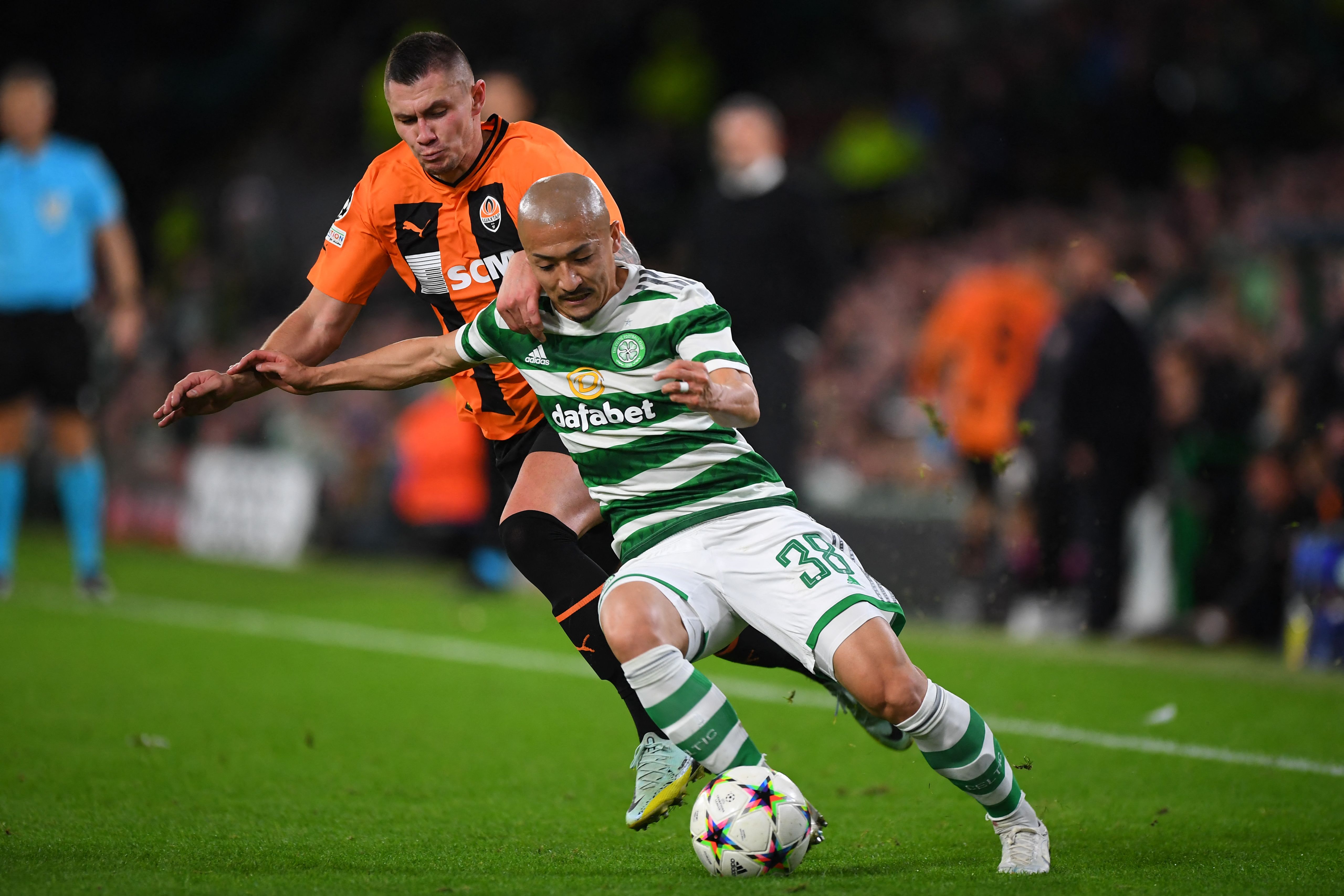 Celtic’s Japanese striker Daizen Maeda during the UEFA Champions League Group F football match between Celtic FC and Shakhtar Donetsk, at the Celtic Park , on October 25, 2022. (Photo by ANDY BUCHANAN/AFP via Getty Images)