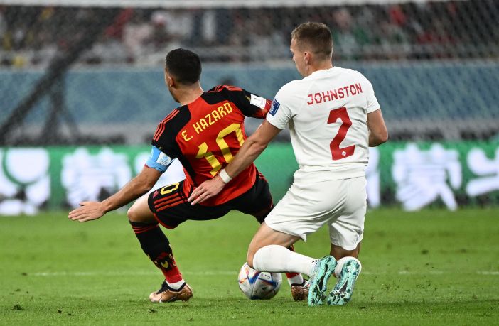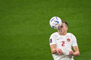 Canada’s defender #02 Alistair Johnston controls the ball . (Photo by Patrick T. FALLON / AFP) (Photo by PATRICK T. FALLON/AFP via Getty Images)