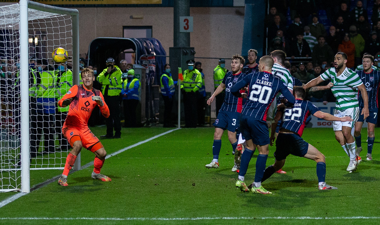 15th December 2021; Victoria Park, Dingwall, Scotland, Scottish Premier league football, Ross County versus Celtic; Anthony Ralston of Celtic heads the winner for Celtic in the 97th minute making it 2-1