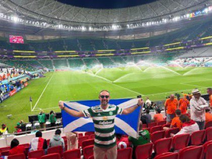 After witnessing the Celtic brand stretching far and wide last night during the Wales v USA game on ITV, there has been another photo of a Celtic supporter emerge from the Senegal and Netherlands fixture. It’s quite remarkable really seeing how popular Celtic FC is as a sporting entity, with the shirts appearing at two very odd games.