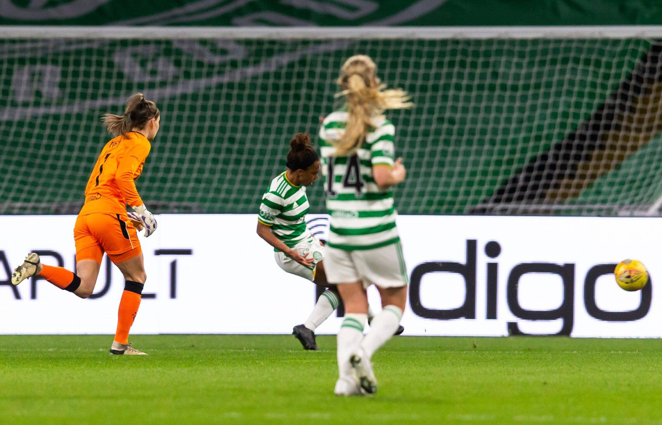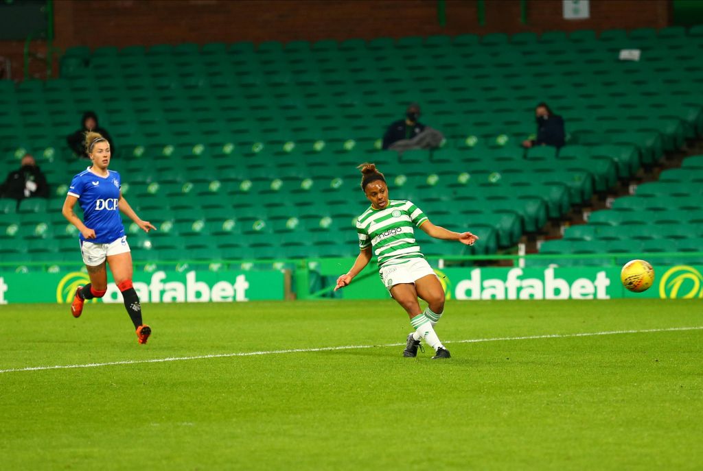 Celtic’s 24-year-old American star certainly picked the time, the place and the occasion to net her first goal for the Hoops that gives Celtic FC Women a double over the big spending theRangers this season, and claws back the five point gap that on Wednesday’s opponents at least. Glasgow City’s 2-1 win over Hibs in midweek keeps them clear at the top of the SWPL table.