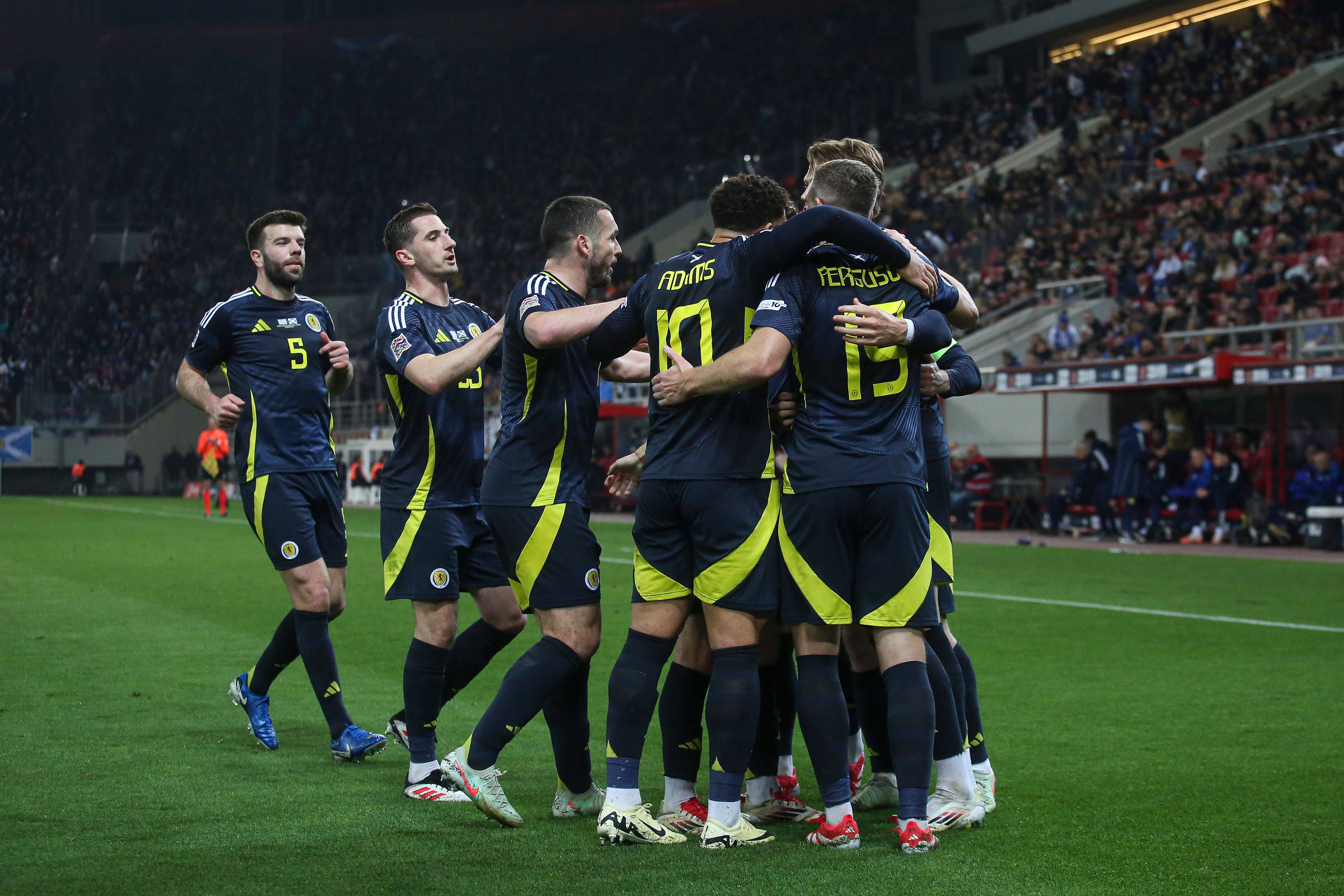 Scotland starting line-up Greece v Scotland, UEFA Nations League, Play-offs, First Leg, Football, Stadio Georgios Karaiskki, Athens, Greece – 20 March 2025. Photo Costas Baltas Shutterstock