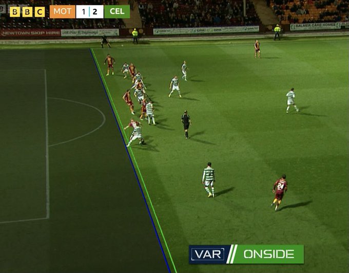 Celtic are apparently ‘BEMUSED’ at the VAR angle that was shown as it was meant to be capturing incidents at the other end of the park, as indeed it did later in the game to demonstrate perfectly well that the Motherwell goal was onside.