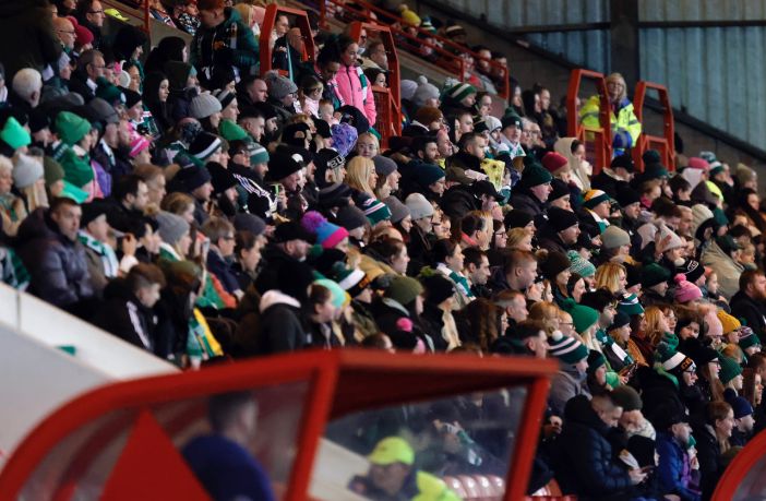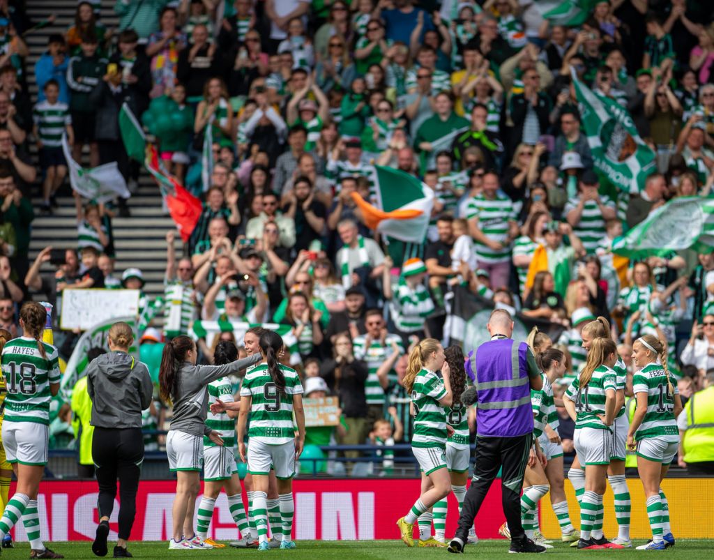 Celtic fans doing the Huddle at the 2023 Scottish Cup final win over theRangers – the Celtic support was much bigger than theirs. Another poorly attended women’s game!