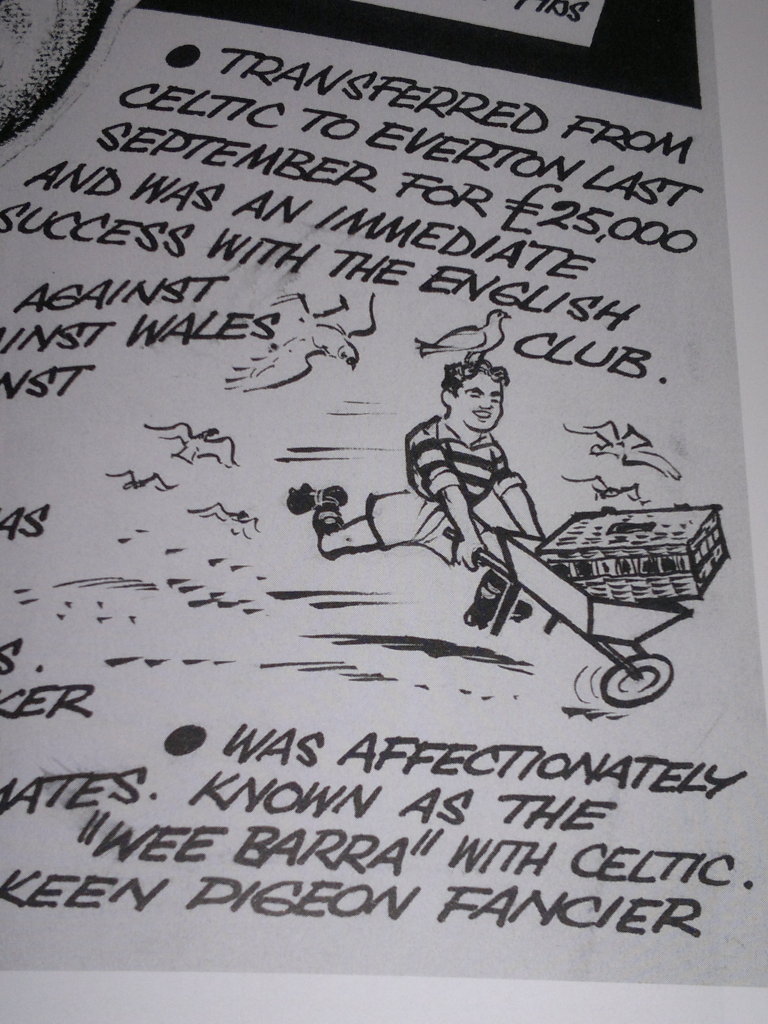 “The Wee Barra” was little more than 5 feet tall when he joined the club in 1948, but it was soon observed that he was a superb player with many skills of dribbling, passing, shooting and goal scoring.