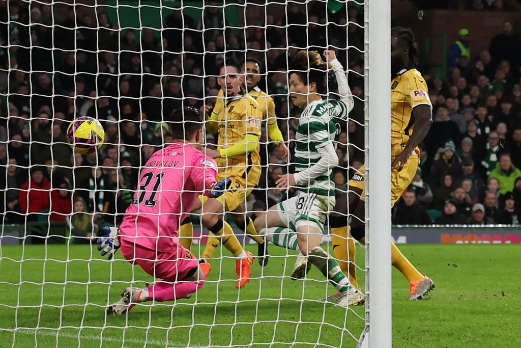 Kyogo Furuhashi of Celtic scores his teams second goal during the Cinch Scottish Premiership match between Celtic FC and Livingston FC at on December 21, 2022 in Glasgow, Scotland. (Photo by Ian MacNicol/Getty Images)