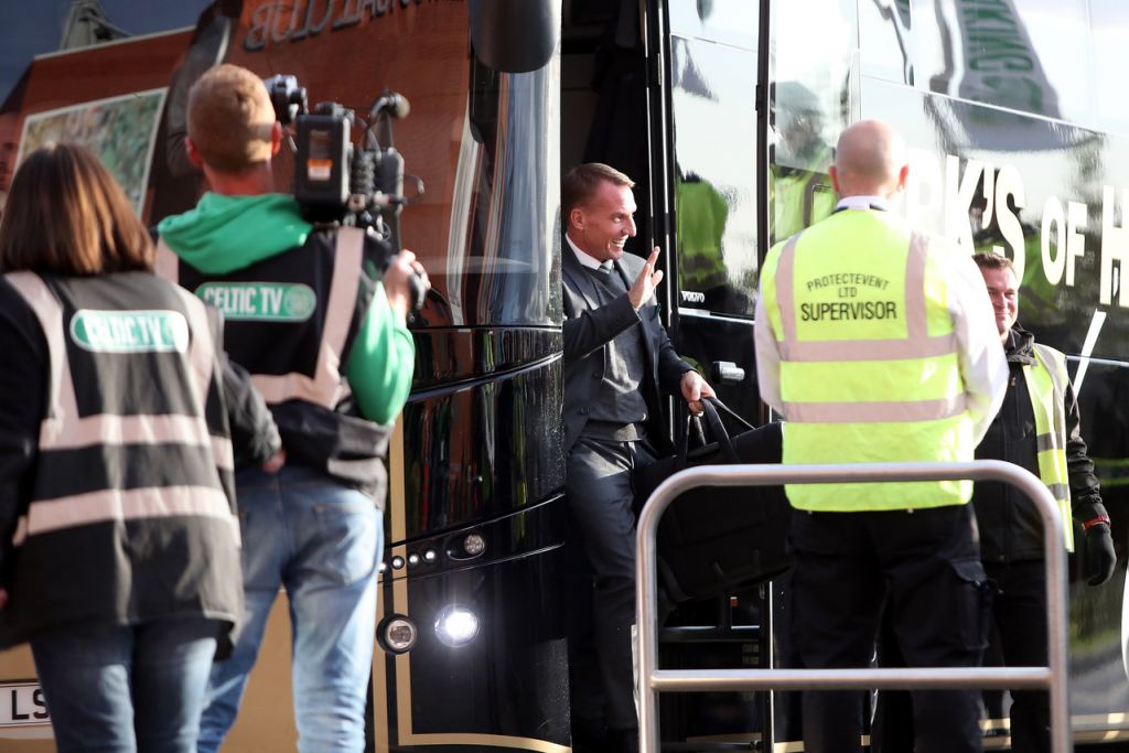 Celtic manager Brendan Rodgers is seen arriving prior to the Ladbrokes Premiership match between Celtic and Motherwell at Celtic Park on February 24, 2019. (Photo by Ian MacNicol/Getty Images)