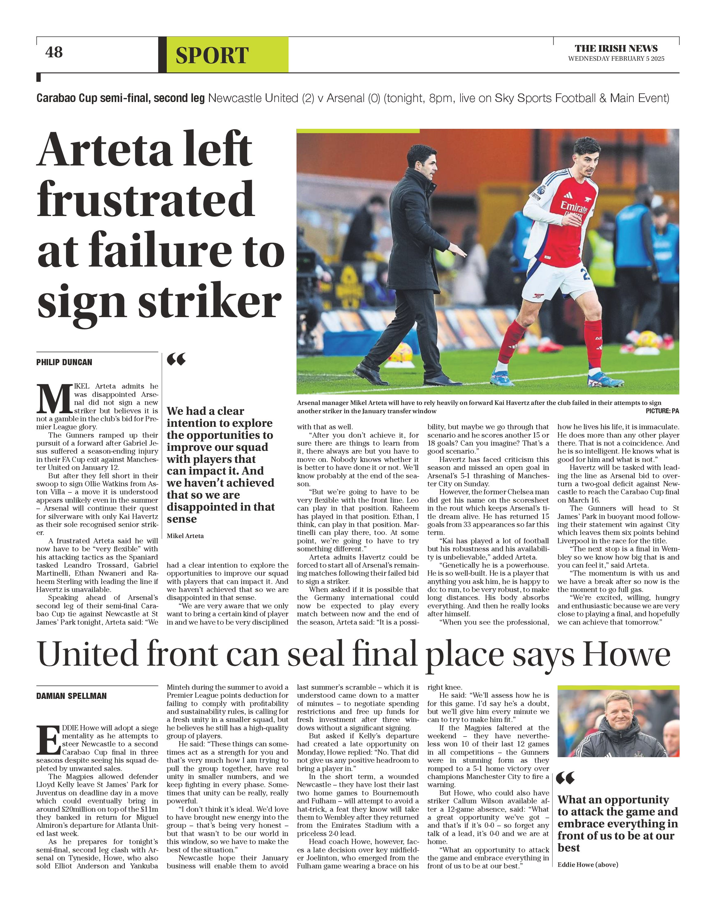 Mikel Arteta, who frustrated Kieran Tierney by denying a loan move to Celtic in the January window ahead of his pre-contract move back to the Hoops in the summer, has been rueing his side’s failure to recruit a striker ahead of the transfer window.