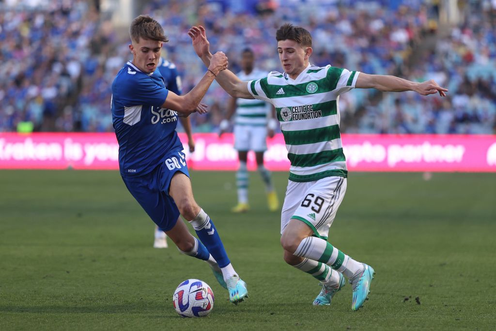 Rocco Vata of Celtic FCcompetes for the ball with Isaac Price of Everton FC during the Sydney Super Cup match between Celtic and Everton at Accor Stadium on November 20, 2022 in Sydney, Australia. (Photo by Scott Gardiner/Getty Images)
