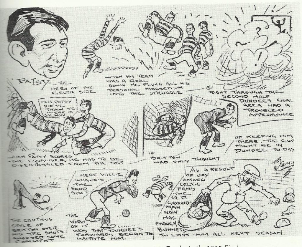 Having lost his wife at the age of 35 during the birth of the couple’s sixth child, Patsy had to combine playing for Celtic and working in the shipyards with looking after six children. Working in the shipyards was a dangerous occupation back then too, as shown by his absence from a Celtic match one weekend due to dropping a box of tools on his foot at work!
