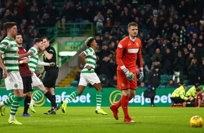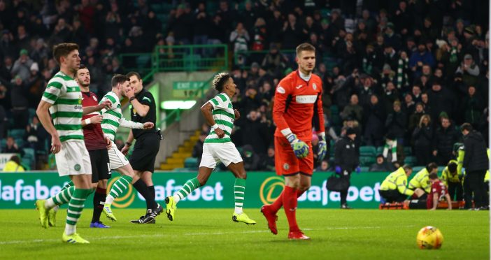 11 Mins – Ryan Christie whips in a free-kick from near the right touchline, 30 yards from the goal line. Oliver Burke reacts first and his header from close range to head past the Saints keeper Hladky to give Celtic an early lead.