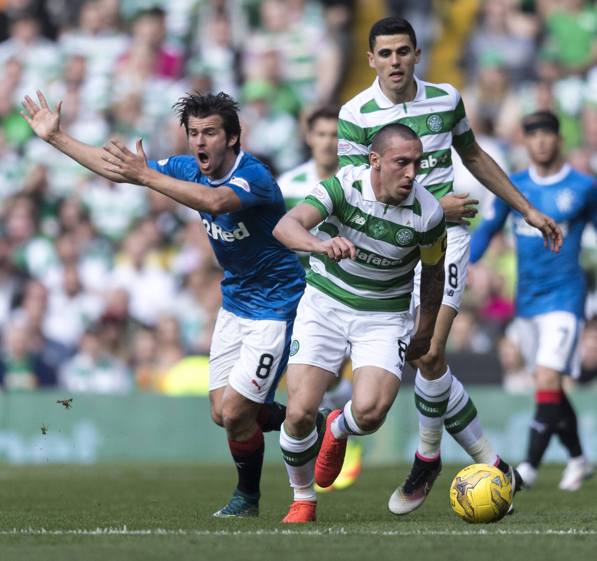 Photo by BPI/Shutterstock. Joey Barton and Scott Brown during the Scottish Premiership match between Celtic and Rangers at Celtic Park on 10th September at Celtic Park