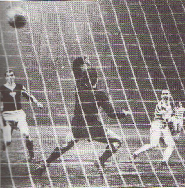 It was quite an even first half, in which Jimmy Johnstone gave us the lead before their outside-right equalised just before the break. Instead of being level, we should have been leading 2–1 at half-time as we had a perfectly good goal disallowed by the referee. The goal was disallowed for a high foot – in this case, the referee chose to apply a European rule that was not used in Scotland as long as both players had their feet up, as had been the case here. Anyway, I thought the goal should have stood.
