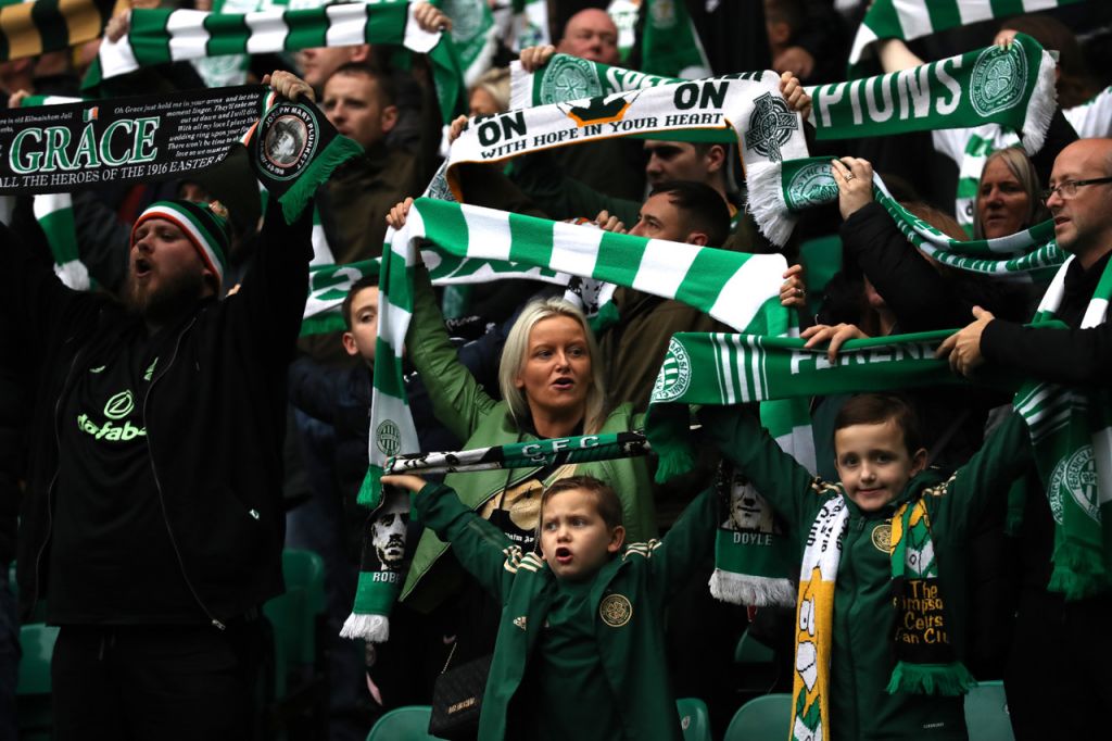 : Fans of Celtic show their support prior to the UEFA Europa League group G match between Celtic FC and Ferencvarosi TC at Celtic Park on October 19, 2021 in Glasgow, Scotland. (Photo by Ian MacNicol/Getty Images)