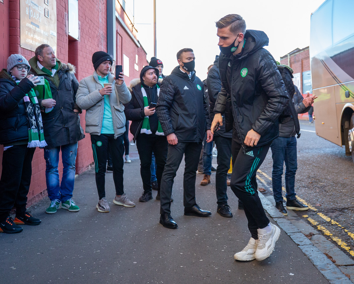 5th December 2021; Tannadice Park, Dundee, Scotland: Scottish Premier League football, Dundee United versus Celtic: Carl Starfelt of Celtic arrives for the match