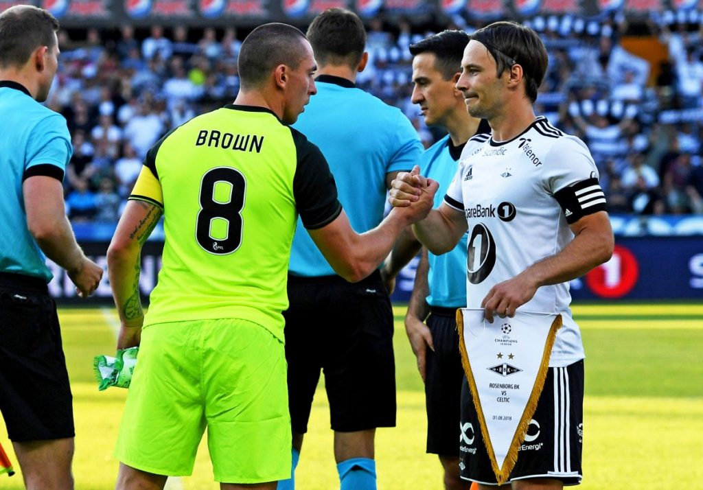 Time to forget this game and move on. It was played in front of a small crowd on a small ground, and atmosphere was a bit boring and even gentlemanly at the end with sincere handshakes from most of the Norwegians. There were one or two bad tackles on Scott Brown – he clearly did not think very highly of one of them – but nothing totally unpleasant, and no-one seemed able to come up with a reasonable explanation as to why Kristofer Ajer received a yellow card. It was clear that the Norwegian fans were in awe of Celtic, but, given that there was no colour clash, they might well have wondered why the famous green and white hoops were not in evidence. Yes, we all now it’s about money and advertising, but I honestly think that the club could, with advantage, forego some of that money in favour of the world getting to see the world’s most famous and most recognisable strip.