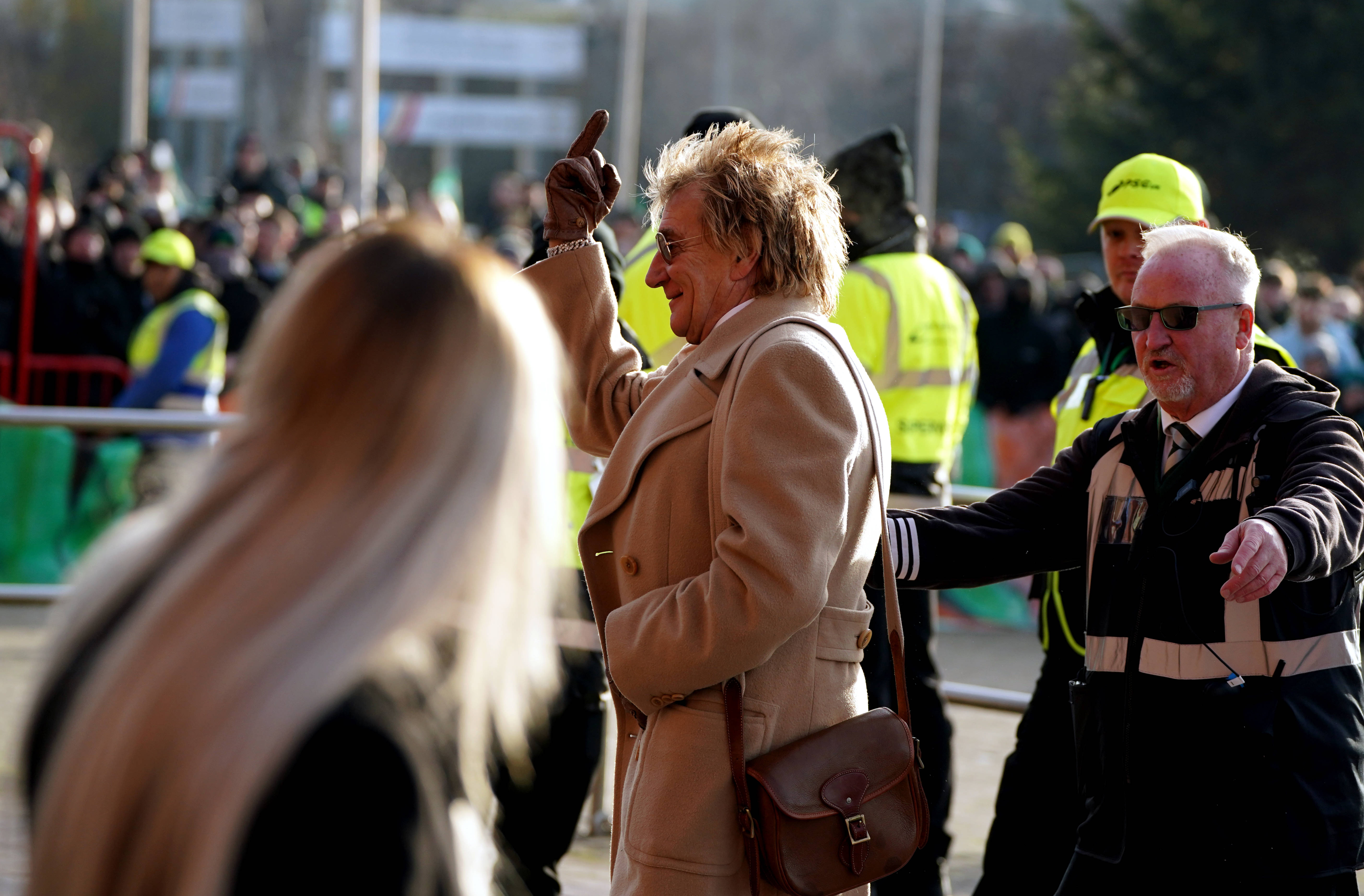Celtic v Motherwell – cinch Premiership –   Celtic fan Rod Stewart gestures as he is pictured arriving ahead of the cinch Premiership match at Celtic Park, Saturday November 25, 2023. Photo Andrew Milligan