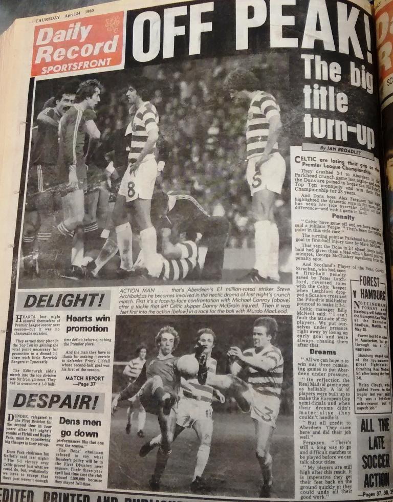Another possibility was the somewhat insular Celtic belief that as long as they beat Rangers, nothing else matters. The win on 2 April (narrow but decisive) over Rangers may have taken Celtic’s eye off the ball and prevented them from seeing Aberdeen as a major threat. However that may be, Aberdeen could not believe their luck and taking advantage of Celtic’s new lack of self-belief and general vulnerability beat Celtic 3-1 on 23 April at Parkhead before 48,000 incredulous spectators, some of them so traumatised by recent events that they could hardly even boo or shout their displeasure. It was a shockingly unprofessional performance.