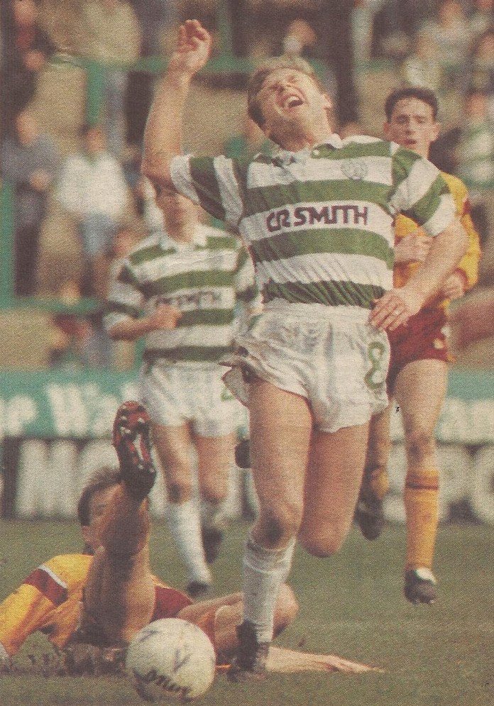 Following on from the two Rangers wins Celtic lost the following weekend on 30 March 1991, 2-1 at Celtic Park to the Steelmen in the league. Tommy Coyne had opened the scoring with a scorching 20 yard finish but somehow Celtic threw away a hard fought advantage and goals from Tom Boyd (whatever happened to that lad) just before half time and a goal right at the start of the second half from Well’s Iain Ferguson saw a deficit Celtic couldn’t recover from.