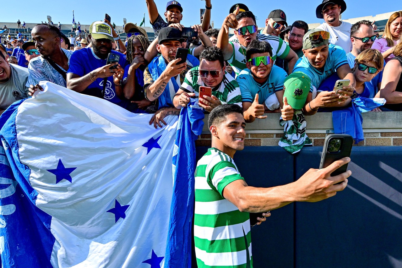 Fans of Kyogo Furuhashi wait for the pre-season match between Chelsea and Celtic at Notre Dame Stadium in South Bend, Indiana, on July 27, 2024. (Photo by KAMIL KRZACZYNSKI/AFP via Getty Images)