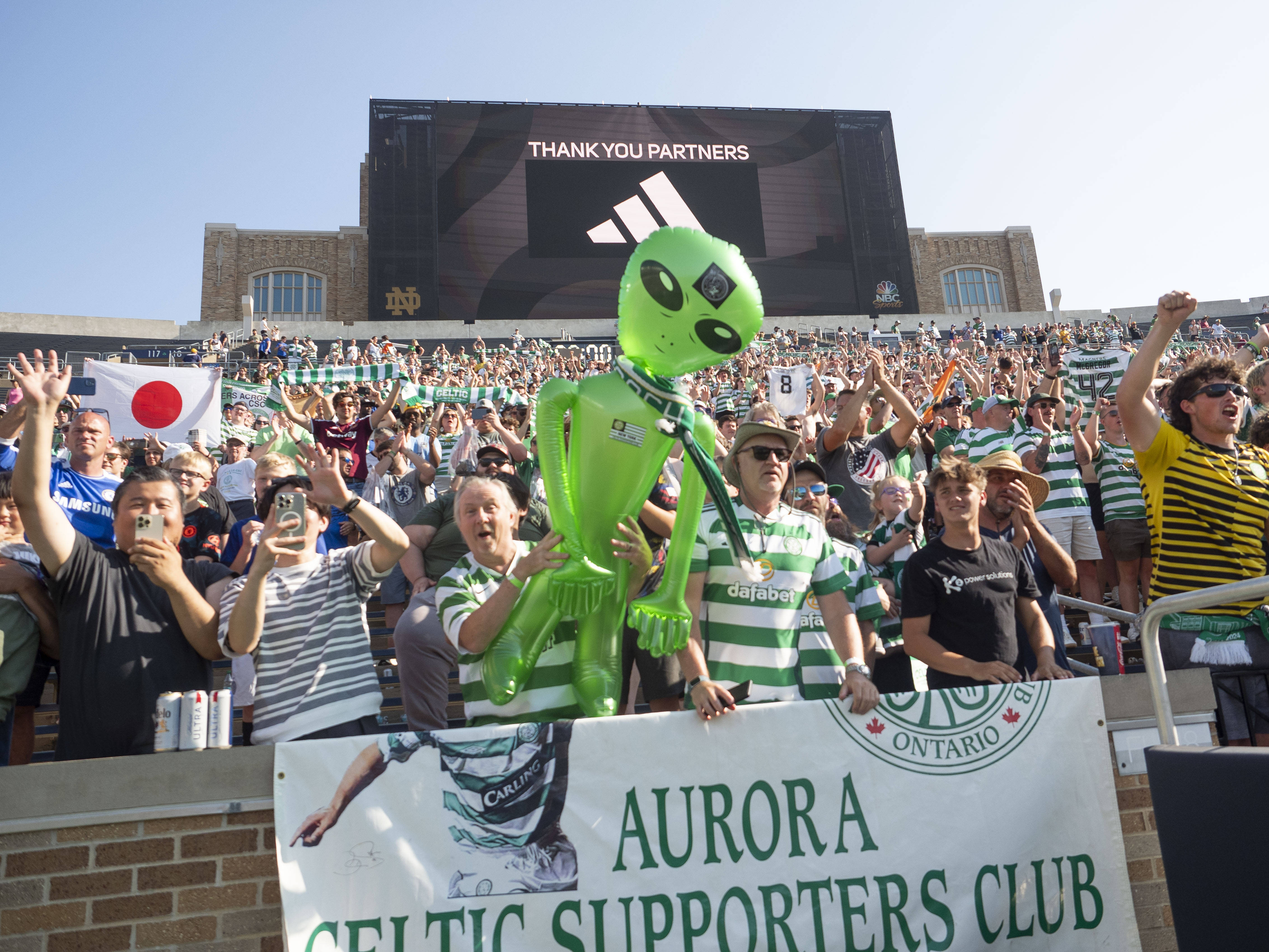 Celtic fans wait for the start of the pre-season club match between Chelsea and Celtic at Notre Dame Stadium in South Bend, Indiana, on July 27, 2024. (Photo by KAMIL KRZACZYNSKI/AFP via Getty Images)