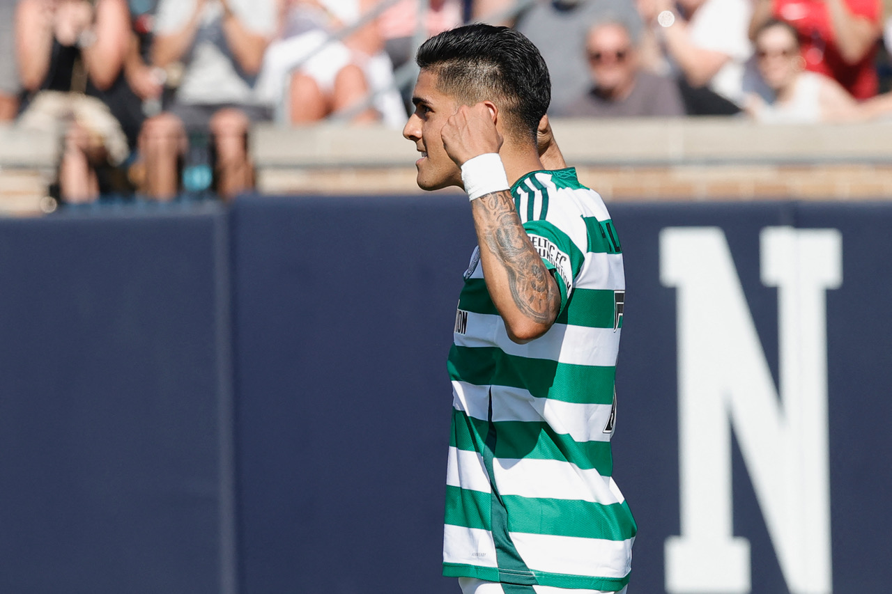 Celtic’s Michael Johnston celebrates his goal during a pre-season match between Chelsea and Celtic at Notre Dame Stadium in South Bend, Indiana, on July 27, 2024. Photo by KAMIL KRZACZYNSKI/AFP via Getty Image