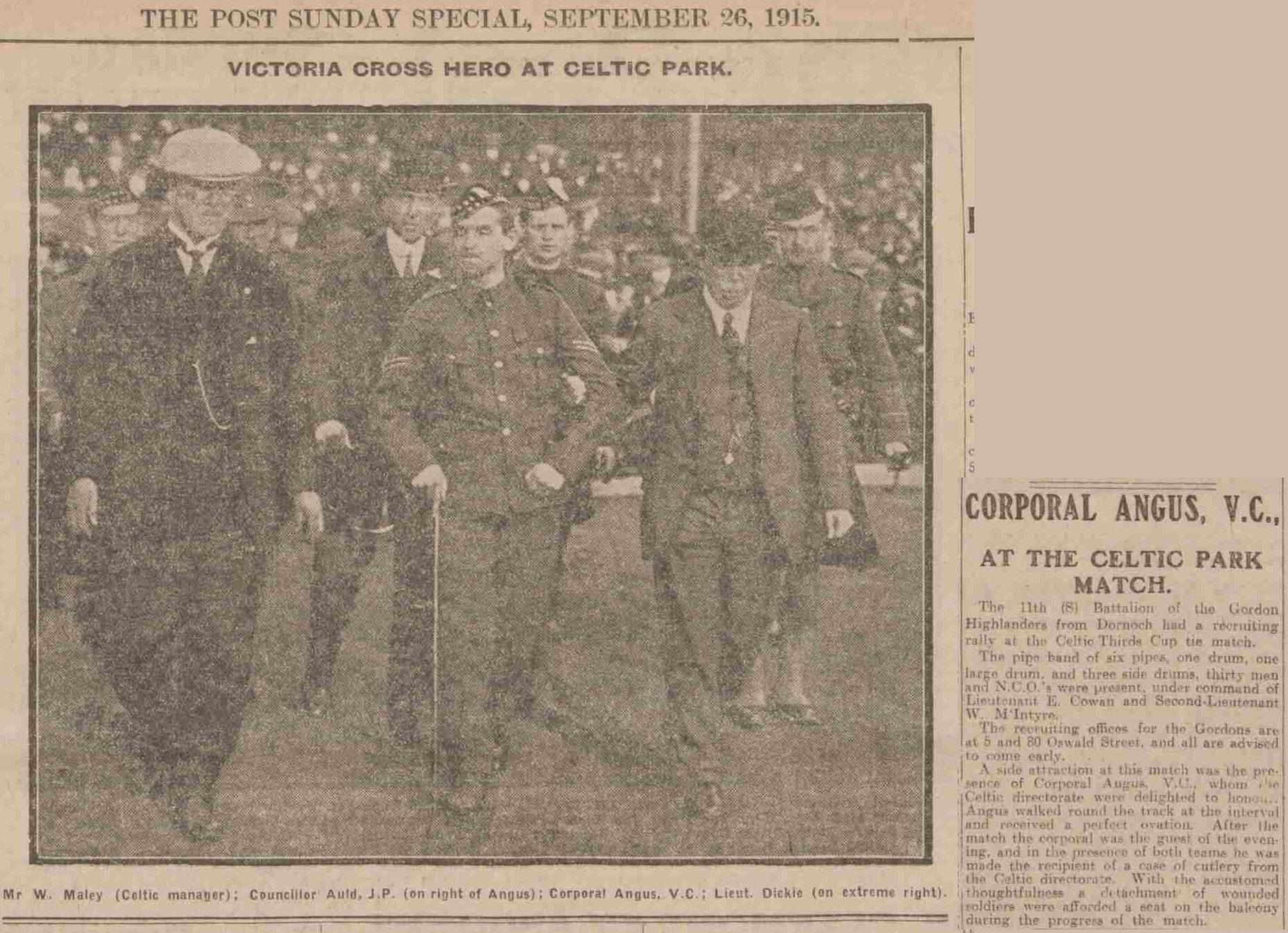 One estimate says that 53 former or current Celtic players fought in World War One. This included Willie Angus – who was awarded the Victoria Cross – and Frank Kelly, who died post-war in France. Other Celts were killed during the fighting, including Peter Johnstone, Robert Craig and Leigh Roose.