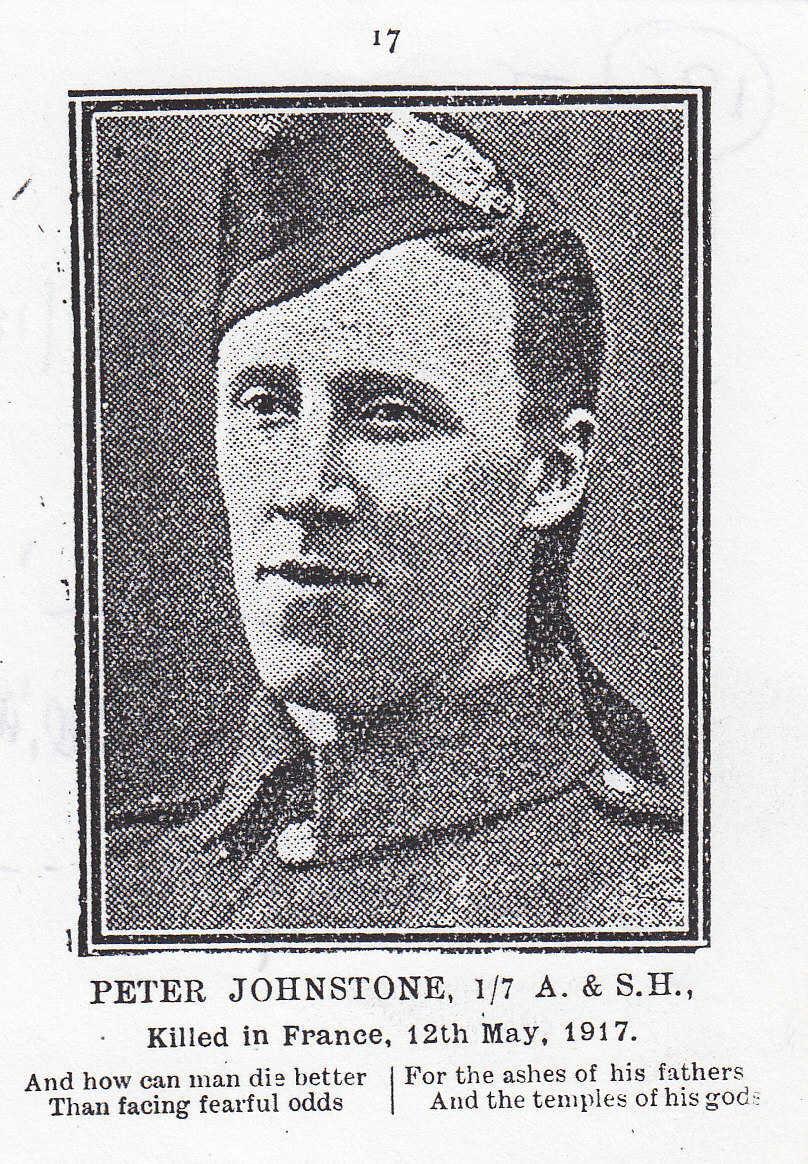 Peter Johnstone played for the Celts more than 200 times. He won numerous competitions, including the 1915 and 1916 titles. However, in 1916, he joined the army and was sent to France. The 1917 Battle of Arras in northern France led to hundreds of thousands of casualties, including Johnstone, and he is buried near the site of the fighting.
