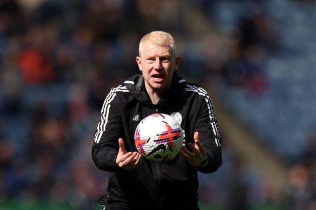 Adam Sadler, Interim Manager of Leicester City, looks on prior to the Premier League match between Leicester City and AFC Bournemouth at The King Power Stadium on April 08, 2023. (Photo by Matthew Lewis/Getty Images)