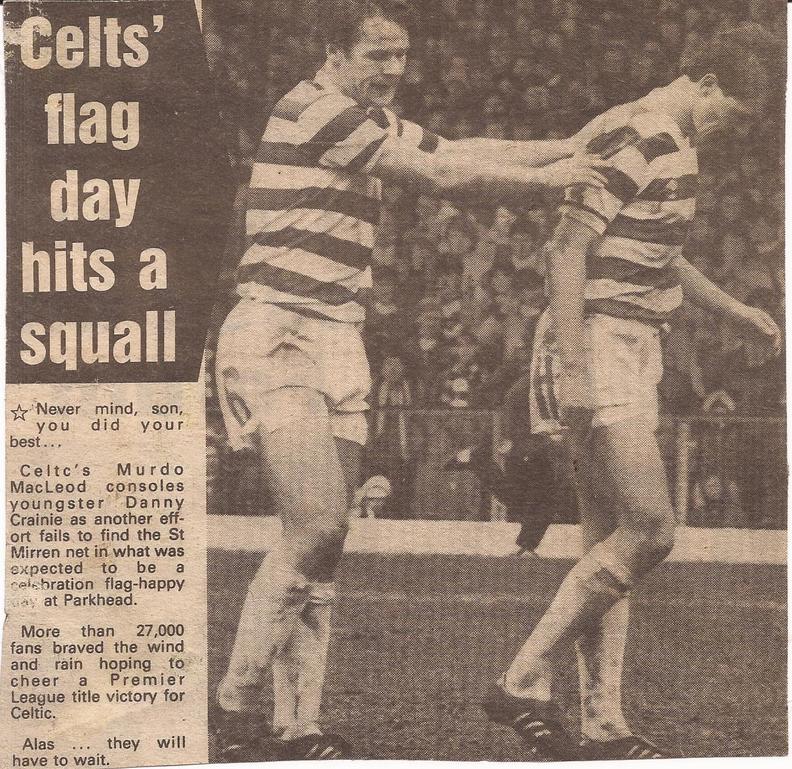 The first chance to grab these points and the title came just two days later, on a Bank Holiday Monday. Saint Mirren were the visitors to Celtic Park, having shipped twelve goals in three Love Street defeats earlier in the season, albeit winning the only previous meeting at Parkhead, 3-1 on Willie Garner Day.