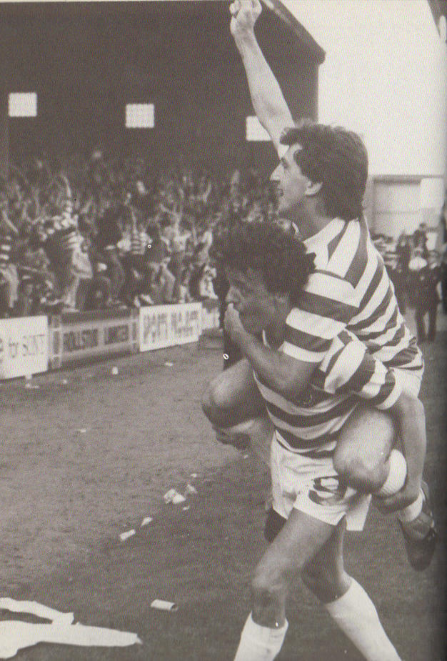 The attacking masterclass continued as Celtic unfurled the League flag with a home fixture against Airdrie, Tommy Burns scoring within 45 seconds, before the ‘terrible trio’ took the tally to five. McCoist’s future strike partner, Sandy Clark, moved a step closer to his own big-money transfer to England, in his case to West Ham United, with a double for the Diamonds in their 5-2 defeat.