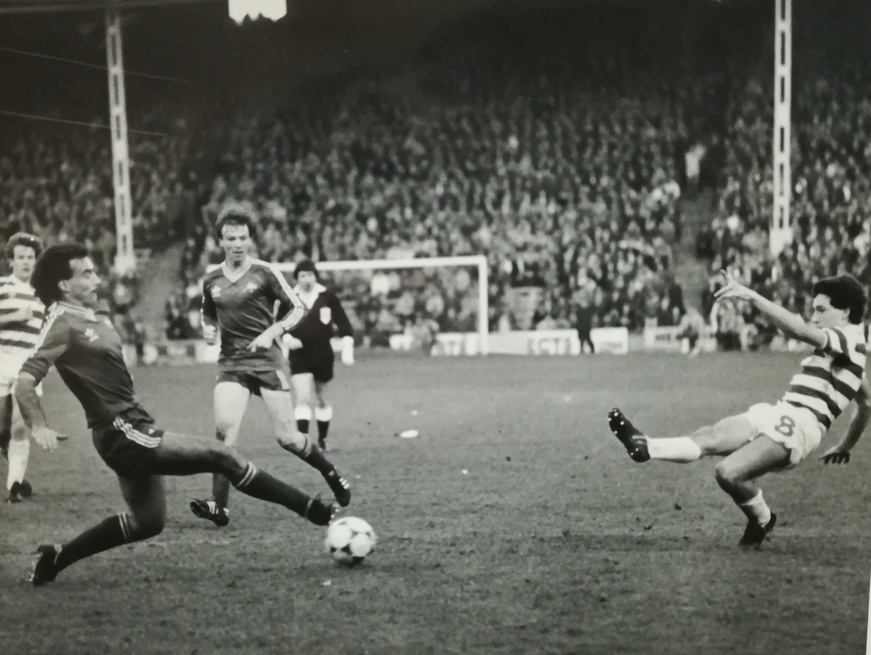Paul McStay would score his first goal for the club the following Saturday at Pittodrie, and what a goal it was, Celtic’s third in a brilliant 3-1 victory over our main rivals. We in the Cairn dutifully respected the official CSA ‘bhoycott’ of the fixture, Aberdeen not for the first or last time slashing our ticket allocation whilst things were going well for them. We then watched the TV highlights through gritted teeth, as the players celebrated in front of a packed Paddock End which included The Celtic Star’s Editor! McCluskey, from the spot, then MacLeod had earlier put Celts ahead, following MacMaster’s first-minute opener for the home side.