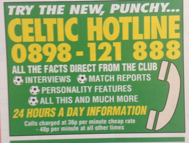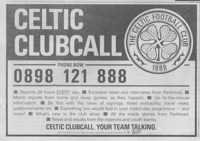 In the late 1980s and early 1990s, many football clubs met their supporter’s desire for information by introducing a premium number that fans could call to get updates. Celtic were one such club, who charged upto 49p per minute for exclusive news and match reports.