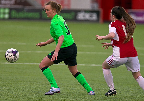 Celtic continued to dominate the match and after winning a series of corners, Josephine Giard, the Celtic striker was the more determined to win an aerial battle and her header sailed into the net to give the visitors a well deserved half-time lead.