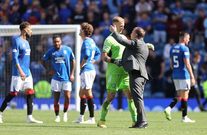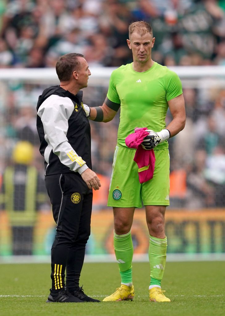 Celtic v Wolverhampton Wanderers – Aviva Stadium Celtic manager Brendan Rodgers and goalkeeper Joe Hart after the pre-season friendly match at the Aviva Stadium, Dublin. Saturday July 29, 2023. Photo Brian Lawless