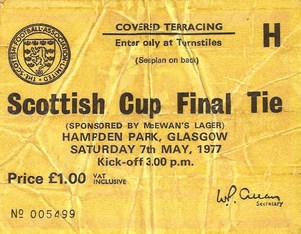 CELTIC’S SCOTTISH CUP FINALS – Number 25…CELTIC 1-0 RANGERS – HAMPDEN, 7th MAY 1977 – This was the first Scottish Cup final to be televised live for 20 years, and given that, and the dreadful weather, it was no surprise that only 54,252 turned up at the antiquated and now dilapidated Hampden to see what turned out to be a dreadful game.