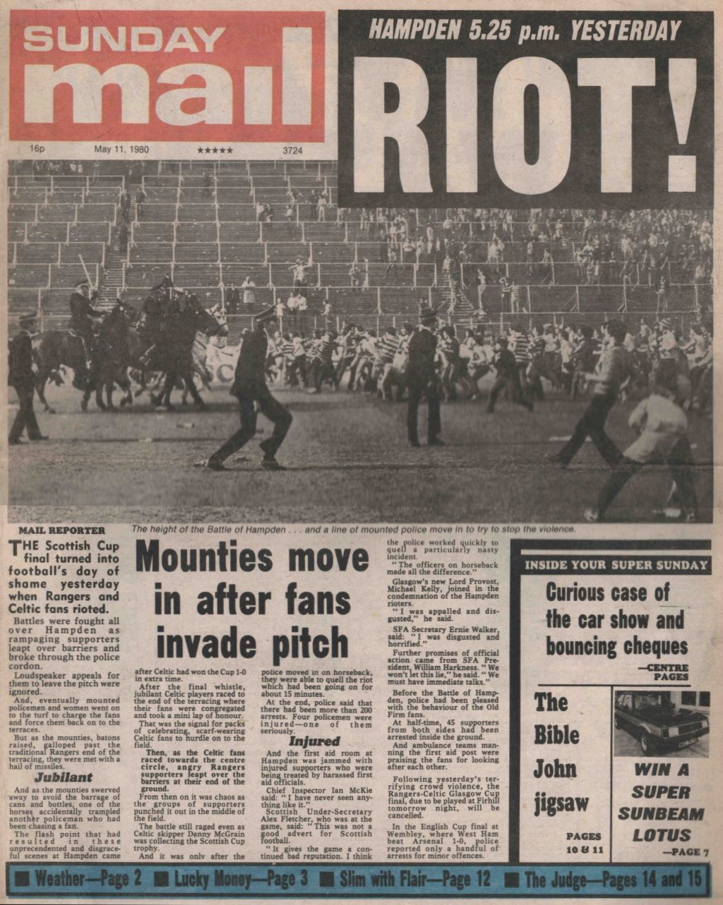 Game has been dubbed the “Hampden Riot 1980”! Said to be Scottish football’s worst riot for 70 years as Celtic and Rangers hooligans fight each other (and the police) on the actual pitch. 210 arrested (160 inside the stadium) 100 people injured including four policemen. Only the introduction of mounted police brings back order and clears the field of fans.