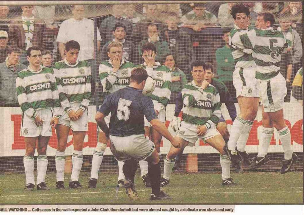 Celtic started well and scored after only 5 minutes through Phil O’Donnell. Falkirk came back into the match with Maurice Johnston missing a good chance in front of goal much to the amusement of the travelling support, especially when it was clear that Bonner had also caught Johnston and left the striker checking all items in his shorts were still intact.