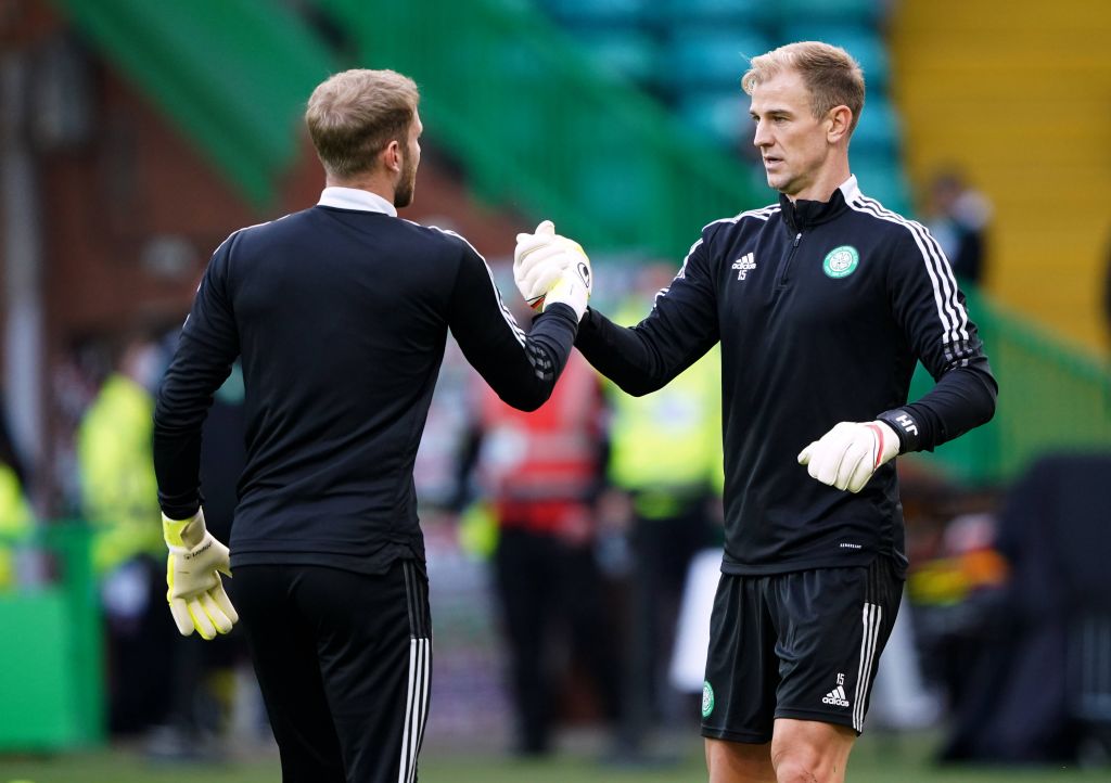 Celtic v AZ Alkmaar – UEFA Europa League – Play-Off – First Leg – Celtic Park Celtic goalkeeper Joe Hart right and Scott Bain during the pre-match warm up ahead of the UEFA Europa League Play-off, first leg match at Celtic Park, . Picture date: Wednesday August 18, 2021. Photo: Andrew Milligan