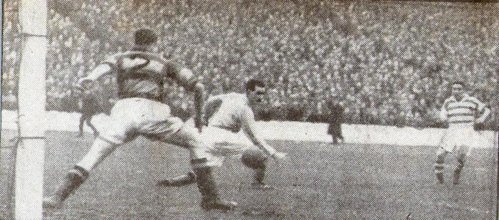 The following Wednesday afternoon saw a deterioration in the International situation with Israel having invaded Egypt, and British intervention now inevitable, and there was no great improvement in the Celtic performance in the replay, at least in the first half before a paltry crowd of 31,000 although it was steadily growing, particularly after the schools came out.