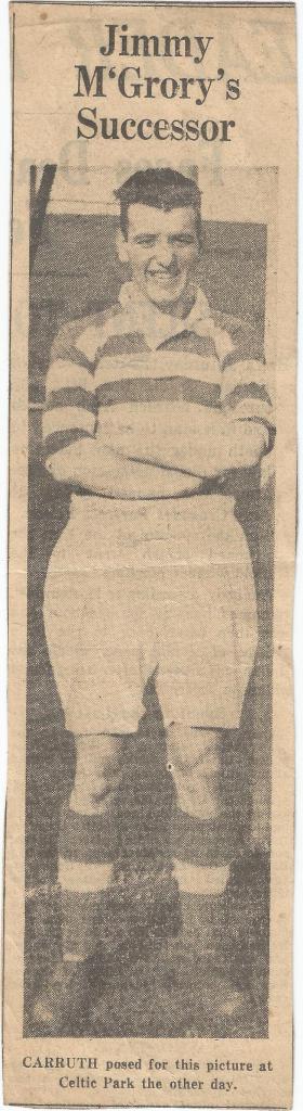 Joe Carruth would replace Jimmy McGrory in the team the following week, and he would get off to a dream start, scoring a hat-trick against St Johnstone then two versus Partick Thistle a fortnight later, in successive 6-0 home wins which removed supporter concerns, at least in the interim, as to how the Celts would fare in the absence of their talismanic centre-forward.