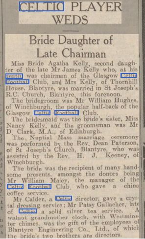 During that summer, another chapter of his unique story would unfold, as he married his sweetheart, Bride Kelly, daughter of James, Celtic’s first superstar and chairman of the club until his death two years earlier, and sister of Bob, the current Parkhead director and future supremo.